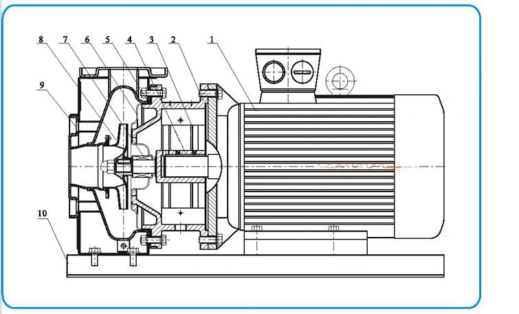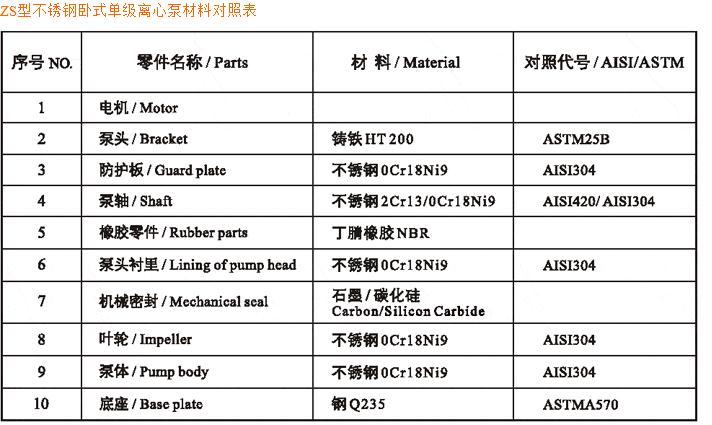 ZS型不銹鋼臥式單級離心泵為泵軸直聯(lián)型聯(lián)結(jié),由泵、泵軸和標(biāo)準(zhǔn)電機(jī)組成: